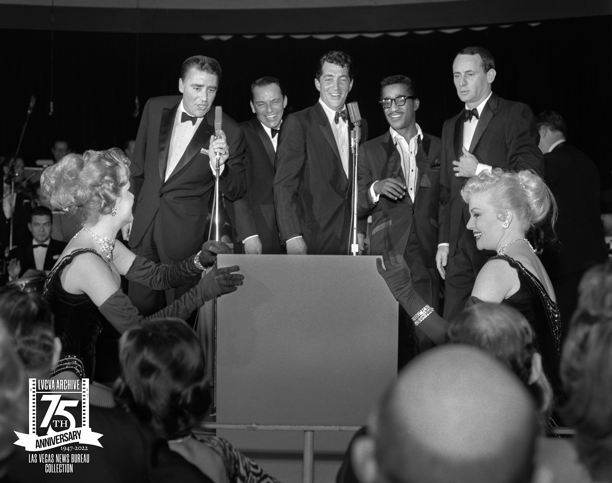 Peter Lawford, Frank Sinatra, Dean Martin, Sammy Davis Jr., and Joey Bishop, known as 'The Rat Pack,' performed at the Sands on January 20, 1960. During the day, they filmed for the movie 'Ocean's Eleven', and in the evenings they performed at the Sands.